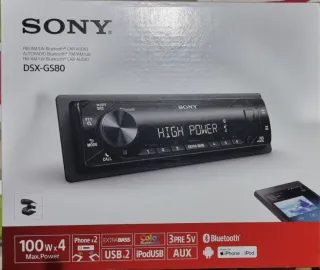 Radio para coche Sony DSX-GS80 con conectividad Bluetooth. - Potencia de 100W x 4. - Amplificador tipo D Hight Power Sony - Compatible con USB y iPod. - Función Extra Bass. - Entrada AUX. - Preparado para iPhone y iPod. Nuevo sin estrenar, lo compre para un Bmw clásico que estaba restaurando pero por no seguir el proyecto lo pongo en venta. Diseño retro y el mas potente que había en tipo de 1 din. Ya no se cercializa ese modelo. Me costó bastante mas.
