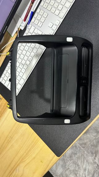 Marco embellecedor para la consola central de Lexus, diseñado para sistemas de navegación GPS. - Color negro mate. - Diseño integrado para el salpicadero. - Con clips y tornillos laterales - Se entrega lo que está en la foto.