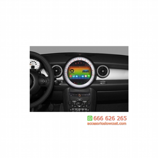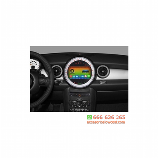 REF: EL000024 Sistema multimedia con navegador integrado especifico para Mini Cooper con pantalla de 7" HD 1024x600 táctil. Importante: fijarse que la consola central de su Mini Cooper sea la indicada para esta versión multimedia. GPS listo para navegar, con posibilidad de ver radares (fijos y posibles móviles), puntos de interés, mapas de España y Europa (tarjeta SD incluida). Sistema Android 11.0 Resolución de pantalla: HD 1024x600, táctil capacitiva. CPU: RK3326 Quad Core 1.5GHz, con 2GB de RAM DDR3. Memoria interna ROM de 16GB. Soporta conexiones Wifi de 3G y 4G. Soporta Bluetooth OBD2-ELM327. Velocímetro iluminado