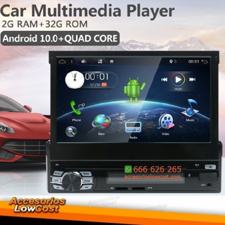 REF: AL001614 Características generales: Sistema operativo Android 11.0. Pantalla táctil capacitiva de 7 pulgadas. Resolución de pantalla: 1024x600, Full HD (1080P) con tecnología IPS. Procesador: CPU de cuatro núcleos de 1,2 GHz. Memoria: 2 GB de RAM DDR3 y 16 GB de ROM (memoria interna). Reproduce múltiples formatos: MP3, MP2, WMA, WAV, ACC, MP4, AVI, FLV, 3GP, DAT, DIVX, MPEG, SVCD, VCD, XVID, JPEG. Puerto USB y SD hasta 64 GB de memoria externa. Función de espejo con tu smartphone Android/IPhone. Sincroniza tu Smartphone/IPhone con la unidad para acceder a la agenda telefónica, música y mucho más. Soporta Mirror link