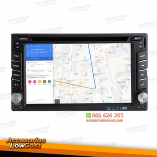 REF: EL000022 NAVEGADOR 2DIN UNIVERSAL MULTIMEDIA GPS ANDROID 11, HD TÁCTIL DE 6,2 PULGADAS. Características generales: Sistema operativo Android 11.0. Pantalla táctil capacitiva de 6,2 pulgadas. Resolución de pantalla: 1024x600, Full HD (1080P) con tecnología IPS. Procesador: CPU de cuatro núcleos de 1,2 GHz. Dimensiones del producto: 150 x 178 x 102 mm (formato 2DIN). Memoria: 2 GB de RAM DDR3 y 16 GB de ROM (memoria interna). Reproduce múltiples formatos: MP3, MP2, WMA, WAV, ACC, MP4, AVI, FLV, 3GP, DAT, DIVX, MPEG, SVCD, VCD, XVID, JPEG. Puerto USB y SD hasta 64 GB de memoria externa. Función de espejo con tu
