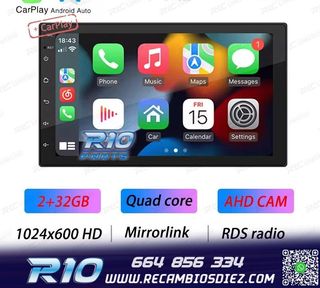***ENVÍO GRATIS A TODA ESPAÑA+CÁMARA TRASERA DE REGALO*** ● Carplay inalambrico + Android auto. Funciones: -Mantienes los mandos del volante -sistema operativo android 13 (el último y más moderno)-Dispone de play store para instalar todas las aplicaciones que quieras:Google,YouTube,Spotify,etc (es como una tablet) ,wifi, youtube,etc. -GPS integrado con todos los mapas de España y Europa. -La cámara trasera (incluida de regalo)se activa automáticamente al dar marcha atrás. -calidad de pantalla hd y muy fluida -Bluetooth y manos libres integrado para contestar llamadas. ** PARA CUALQUIER PREGUNTA CONTACTAR AL WSP 614977498**