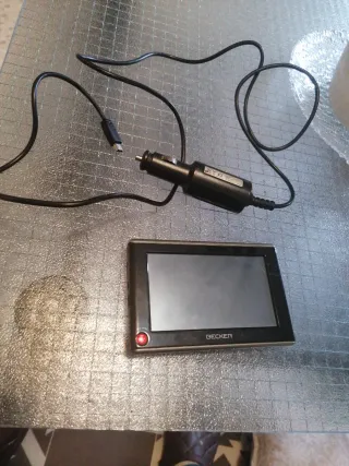 Navegador GPS portátil para coche de la marca Becker. Incluye cargador para el mechero del coche. - Pantalla a color. - Diseño compacto y ligero. - Soporte para coche.