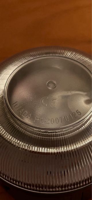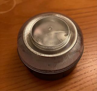 Luz de emergencia para coche, compacta y fácil de usar. - Diseño circular con carcasa transparente acanalada. - Marcado CE visible. - Código de producto: PC20070125.