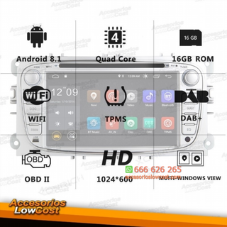REF: EL000056 NAVEGADOR MULTIMEDIA ANDROID 11.0 GPS DVD 2 DIN 7” TÁCTIL, ESPECÍFICO PARA FORD, COLOR PLATA. Válido para los modelos: Focus II (2008-2011); Mondeo (2007- 2011); C-Max (2009-2010); S-Max (2008-2011); Galaxy II (2006-2011); Kuga (2008-2012); Transit Connect (2010-). NOTA: verificar forma y dimensiones del hueco de salpicadero antes del pedido. CARACTERÍSTICAS GENERALES: Sistema Android 11.0 Pantalla táctil capacitiva de 7 pulgadas en alta definición (resolución: 1024x600) con tecnología IPS. Experiencia de usuario mejorada. Incluye mapas de España y Europa. CPU de cuatro núcleos (Quad Core) a 1,6 GHz con 2 GB