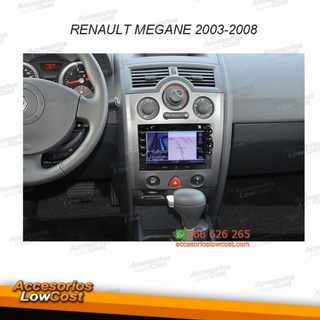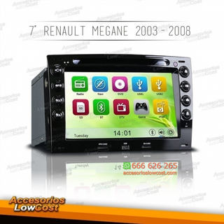REF: AL021887 RADIO NAVEGADOR ESPECÍFICO PARA RENAULT MEGANE 2003-2008 Pantalla táctil, 800x480 de 7 pulgadas HD táctil. Tamaño 2 Din. CPU de doble núcleo 800MHz. Sistema operativo Windows CE 6.0. Conexión a internet mediante pincho 3G Completo ordenador de viaje (GPS). Incluye mapas de España y Europa. Indicador de radares fijos y posibles móviles. Función dual zone (mientras navegas puedes emitir video a otras pantallas conectadas). Compatible mandos al volante 6 colores de botones diferentes. Salida de altavoces 4x50W. Salida de Subwoofer. Incluye 6 juegos. Posibilidad de conectar cámara marcha atrás (opcional) y