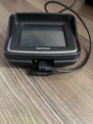 Navegador GPS TomTom Rider con mapas de Iberia (España y Portugal) y y Europa Central. Resistente al agua y con pantalla 3,5”. Dos cargadores + sujeción tipo RAM. En perfecto estado