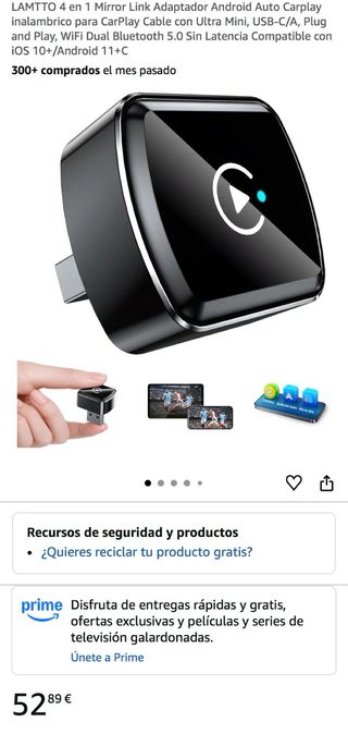 NUEVO SIN ESTRENAR IDEAL PARA REGALO. Adaptador inalámbrico 4 en 1 para CarPlay y Android Auto. Conecta tu móvil al coche de forma sencilla. - Ultra Mini, USB-C/A. - Plug and Play. - WiFi Dual Bluetooth 5.0. - Compatible con iOS 10+/Android 11+.