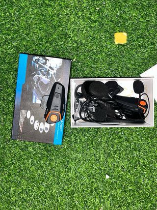 Auriculares intercomunicadores Bluetooth para moto. Incluye dos unidades. - Radio FM integrada. - Comunicación piloto a pasajero. - Alcance de hasta 800-1000m entre pilotos. - Compatible con la mayoría de cascos. - Interfaz de entrada por cable.