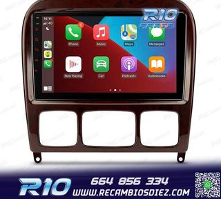 Móvil: 664 856 334 - Referencia: MUL010004. RADIO GPS ANDROID 13 MERCEDES CLASE S W220 98-05 RADIO GPS ANDROID 13 MB CLASE S W220 Octa Core 4GB RAM + 64GB ROM+CARPLAY AUTO+DSP INTEGRADOS 9? Modelos y años compatibles: Mercedes-Benz Clase S W220 (S280 / S320 / S350 / S400 / S430 / S500) (1998-2005) Panel: 258*232mm Notas Importantes: 1. Si su coche tiene sistema COMAND APS NTG 1, podrá mantener el sistema COMAND, pero para ello debe adquirir en las opciones el decodificador ?FOBB01?. 3. Si tiene cargador de CD/DVD, no lo mantendrá tras instalar este equipo. Características: Proc