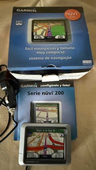 Navegador GPS Garmin nüvi 200, compacto y fácil de usar. - Modelo nüvi 200. - Incluye cargador de coche.