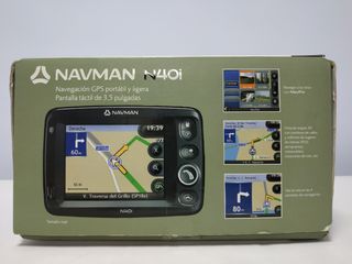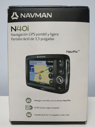 Navegador GPS Navman N40i con cámara. Pantalla táctil 3,5 pulgadas a todo color. Como nuevo, poco uso. Portátil y ligero. En perfecto estado. Se vende con la caja original, CD con mapas europeos, manual de referencia rápida, guía de instalación y todos los accesorios: adaptador de alimentación del vehículo, unidad de alimentación AC, cable USB, soporte de montaje en el interior del vehículo y funda de protección.