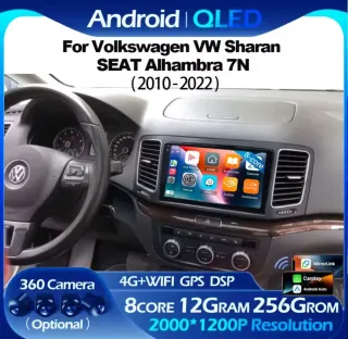 Pantalla multimedia Android QLED para Volkswagen Sharan y SEAT Alhambra 7N (2010-2022). - Procesador 8-core. - 4+32GB. - Resolución 2000*1200P. - Conectividad 4G+WIFI. - GPS integrado. - DSP. - Compatible con MirrorLink, Carplay y Android Auto. - Opción de cámara 360.