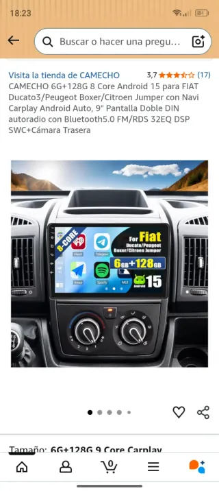 Pantalla multimedia para Fiat Ducato, Peugeot Boxer y Citroen Jumper. -por herror en la compra se vende nueva ya que no me vale para mí furgoneta y ya no puedo devolverlo - Pantalla de 9 pulgadas. - 6GB RAM + 128GB almacenamiento. - Android 15. - 8 núcleos. - Bluetooth 5.0. - Navegación GPS. - Compatible con Carplay y Android Auto. - Incluye cámara trasera.
