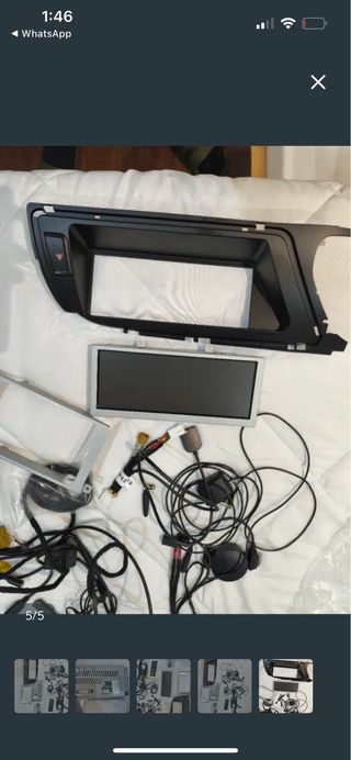 Pantalla para Audi A5 compatible con Car Play. La compré por error y no se a usado - Marco negro para instalación. - Pantalla de visualización. - Cables de conexión.