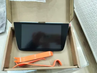 Pantalla para coche con herramientas de instalación incluidas. - Pantalla negra. - Set de herramientas de plástico naranja.