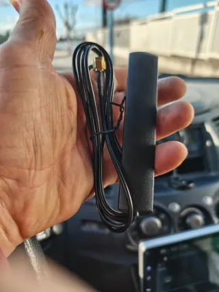 Antena de WiFi para radios de coche. Es un accesorio para mejorar la conexión. - Conector dorado. - Cable negro.
