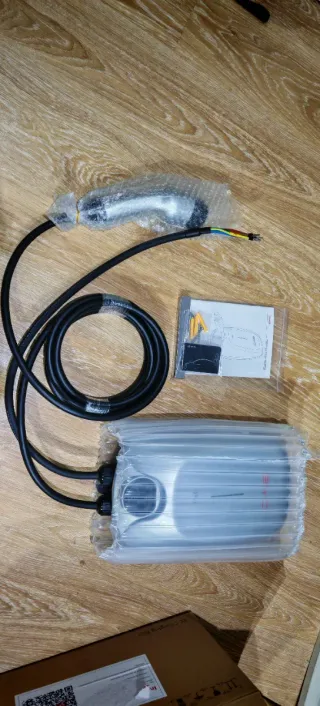 Cargador para coche eléctrico, completamente nuevo y sin usar. - Cable de carga negro. - Incluye conectores y cables de colores (amarillo, azul, rojo). - Empaquetado en plástico protector. - Cargador coche eléctrico Wallbox – Tipo 2 - Cargador doméstico para vehículo eléctrico - Conector Tipo 2 (estándar europeo) - Potencia de carga hasta 7,4 kW (monofásico) - Cable integrado - Indicador LED de estado - Instalación fija en pared - Compatible con la mayoría de coches eléctricos e híbridos enchufables - Estado: nuevo, sin usar