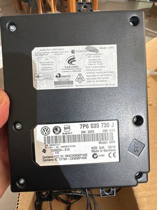 Módulo de control de unidad de manos libres (UHV) para vehículos del grupo Volkswagen. - Número de pieza: 7P6 035 730 J - Versión de software: SW 3200 - Versión de hardware: HW H15 - Fecha de fabricación: 26/12 Lo tuve instalado en un VW Passat de empresa que me entregaron sin manos libres, cuando devolví el coche se desinstaló para futuros coches y ya todos me vinieron con manos libres Incluye todos los cables necesarios para la instalación Regalo cable VCDS VAG 11 HEX+CAN con su disco de instalación que hacía falta para dar de alta en el coche. Ya sólo este cable sirve para ver/borrar códigos del coche No negociable