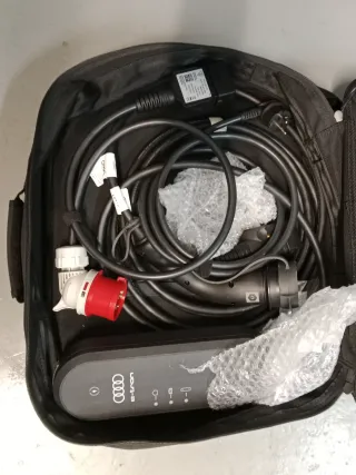 Cargador portátil para Audi e-tron. - Incluye bolsa de transporte. - Adaptador de enchufe industrial rojo.