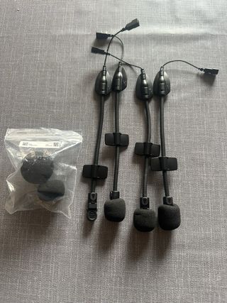 Micrófono de repuesto para sistemas de comunicación Cardo. Nuevos a estrenar, 3 unidades disponibles, precio unitario. - Micrófono con espuma protectora. - Brazo flexible. - Clip de sujeción. - Conector de audio.