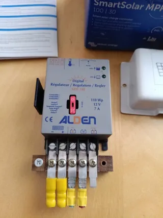 Regulador digital de la marca Alden, ideal para autocaravanas. - Modelo: SmartSolar MPPT. - Voltaje: 12V. - Corriente: 7.6A. se vende por cambiar a uno más grande