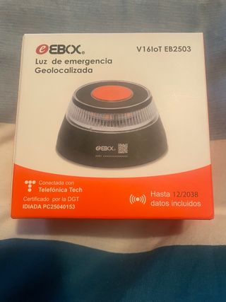 Baliza de emergencia V16 IoT EB2503 de EBOX. - Luz de emergencia geolocalizada. - Conectada con Telefónica Tech. - Certificado por la DGT. - IDIADA PC25040153. - Datos incluidos hasta 12/2038.