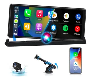 Pantalla GEARELEC con funciones de Carplay y Android Auto. - Compatible con Carplay (cableado e inalámbrico). - Compatible con Android Auto (cableado e inalámbrico). - Función MirrorLink para duplicación de pantalla. - Transmisor FM integrado. - Salida de audio AUX.