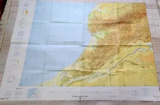 Mapa táctico de navegación aérea TPC G-1D, Morocco También utilizado en navegación terrestre cubriendo región Noroeste de Maroc - Dimensiones: muy grande 144 cm x 105 cm. - Material: Papel. Las cartas aeronáuticas mundiales, incluidas las cartas TPC y ONC, cubren áreas terrestres a un tamaño y escala estándar para la navegación de aeronaves que operan a grandes altitudes. Sin embargo, su nivel de detalle los hace útiles como mapas topográficos