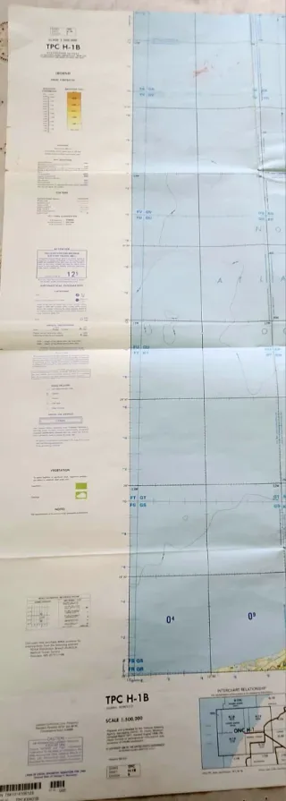 Mapa táctico de navegación aérea TPC H -1C, Morocco utilizado en navegación terrestre cubriendo zonas del sur de Maroc - Dimensiones: muy grande 144 cm x 105 cm. - Material: Papel. Las cartas aeronáuticas mundiales, incluidas las cartas TPC y ONC, cubren áreas terrestres a un tamaño y escala estándar para la navegación de aeronaves que operan a grandes altitudes. Sin embargo, su nivel de detalle los hace útiles como mapas topográficos
