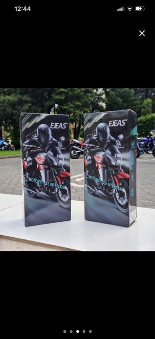 Intercoms de la marca EJEAS. Diseñado para facilitar la comunicación durante los viajes. Packs disponibles: Individual. 35€ Dúo. 55€ Individual + mando de control en el manillar. 50€ Dúo + mando de control en el manillar. 69€ Características: - Resistentes al agua. - Bluetooth 5.1. - Llamadas telefónicas automáticas. - Alcance hasta 800 m. - Cancelación de ruido. - Batería: hasta 18 h uso, 260 h standby y 25 h música. - Conexión con varias personas a la vez. - Control de GPS, música y llamadas. Pago mediante Paypal, Bizum, Transferencia...etc. Envio o Entrega en mano.