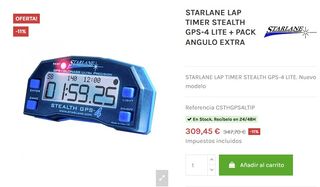 Laptimer de la marca italiana Starlane. Modelo Stealth GPS 4 Lite + Pack inertial (ángulos) + versión full. La versión Lite+Inertial Pack es la que permite ver en la pantalla la inclinación pero no exportar los datos al ordenador para el análisis posterior. Por ellos se hizo upgrade a la versión full+inertial pack (128€). Completamente nuevo. Precio no negociable (solo el laptimer con paquete full y ángulos son 450€).
