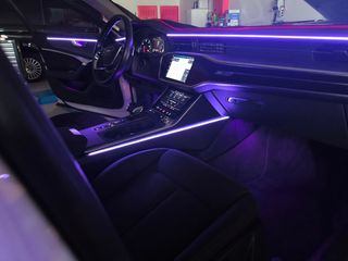 INSTALACION DE LUZ AMBIENTAL PROFESIONAL a medida en cualquier tipo de vehículo,la iluminación suele tener puertas completas con 3 puntos de luz,suelo completo salpicadero completo etc es totalmente a medida y se maneja desde pulsador oculto o con la aplicación del móvil.