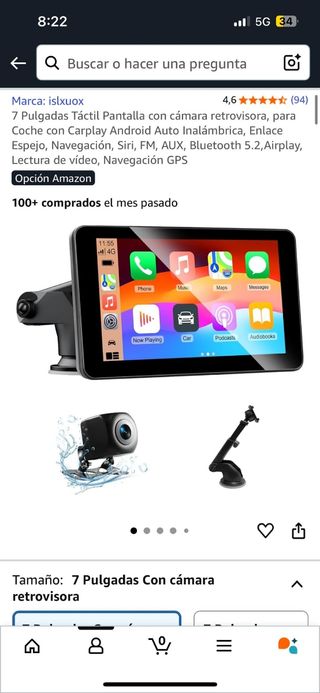 Pantalla táctil de 7 pulgadas con cámara retrovisora. - Pantalla táctil. - Cámara retrovisora incluida. En Amazon ronda los 80€ actualmente cómo se puede ver en las fotos precio negociable, pero sin abusar. Lo acabo de comprar y no tienen ningún uso todos los detalles en las fotografías. Pregunta sólo si estás interesado muchas gracias.