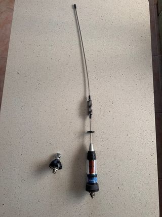 Antena para emisora CB, ideal para vehículos 4x4. Incluye base, soporte y cable No se ha llegado a instalar. NUEVO TODO