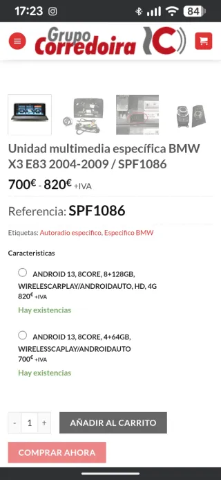 Pantalla multimedia específica para BMW X3 E83 (2004-2009). - Android 13, 8 núcleos, 8+128GB, Wireless CarPlay/Android Auto, HD, 4G. - Android 13, 8 núcleos, 4+64GB, Wireless CarPlay/Android Auto.