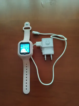 Reloj inteligente Momo Space con localizador GPS. - Diseño en color rosa pálido. - Correa con múltiples orificios para ajuste. - Pantalla a color. - Está como nuevo, casi no se ha usado. - Lo entrego en su caja original,con instrucciones y una tarjeta Vodafone que venía con el reloj y no la llegué a instalar