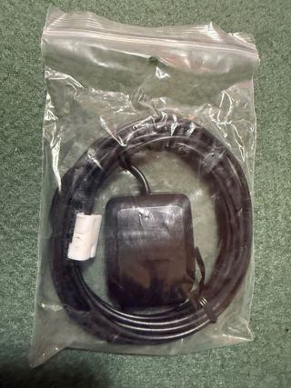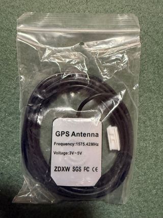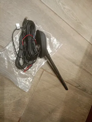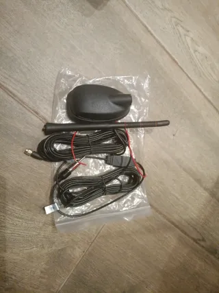 Antena GPS para coche con cableado incluido. - Cable negro con conectores. - Cable rojo y negro para alimentación.