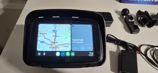 Navegador GPS para moto con función CarPlay, diseñado para resistir condiciones climáticas adversas. Incluye soportes y anclajes para instalar fijo o extraible en manillar, espejo, barra. Lleva instalado el compatible con la base de BMW. Cables para conectar a batería o a puerto usb. Se incluye embalaje original, instrucciones y funda de transporte. - Compatible con Apple y Android. - Pantalla táctil. - Conexión Bluetooth. - Soporte para tarjeta SD. - Resistente al agua IPX.