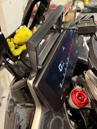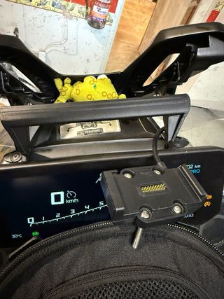 Soporte para GPS, impreso en 3D en material ABS, para BMW R1300RT. Se adapta perfectamente a la instrumentación de la moto. - Diseño robusto y ligero. - Fácil instalación. - Material resistente y duradero. - Color negro. - Diámetro de la barra: 22mm (otros diámetros, consultar) Se sujeta por medio de los dos tornillos que hay justo detrás de la TFT. En principio los originales que tiene la moto no sirven y habría que cambiarlos. Yo he usado 2 de automoción C05, que entran justos dándole con un martillo para que se queden bien y no se salen. Tambien se pueden usar otro tipo de tornillo con tuerca.