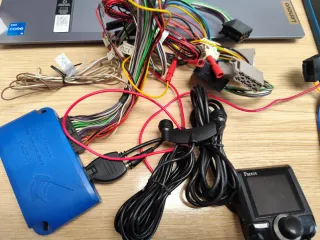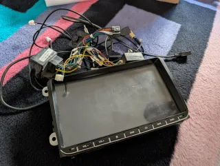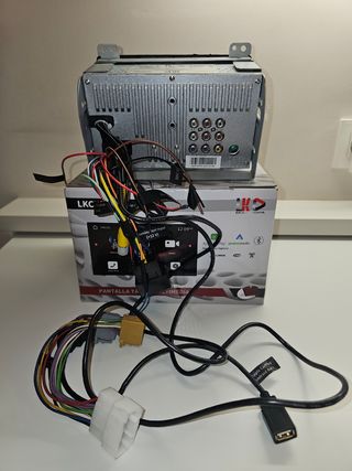 Radio pantalla 9" muy básica, funciona bien, la quito porque se me hace lenta y no tiene carplay ni android auto, solo música bluetooth normal conectado al teléfono. Los cables he visto que están algo apañado alguno, con cinta aislante, no sé qué habrá hecho con ellos el dueño anterior del coche...