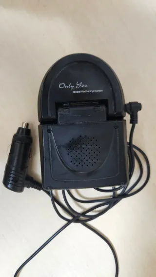 Detector de radares portátil con pantalla y controles. - Pantalla con texto Only You. - Panel de control con botones. - Incluye cargador para coche.