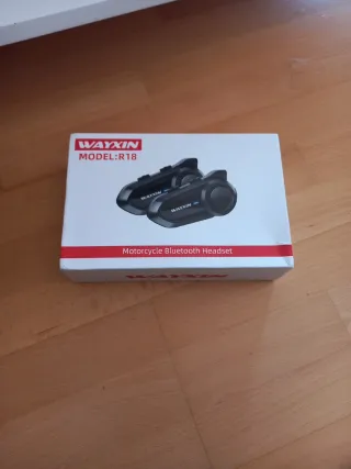 Juego de Intercomunicadores Bluetooth para casco de moto. En las fotografías adjuntas se detallan las características de la pareja de intercomunicadores. Viene con el kit completo de las diferentes colocaciones.. - Modelo: R18 - Marca: WAYXIN - Tipo: Bluetooth Headset