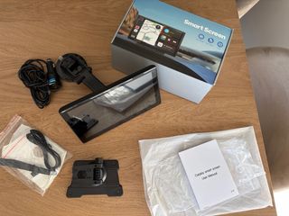 Pantalla inteligente para coche con Carplay. - Incluye soporte con ventosa. - Cable de carga para coche tipo mechero y tipo conector audio. - Manual de usuario. - Caja con todos los accesorios. - Soporte para fijar al salpicadero sin utilizar. - Pegatinas nuevas para utilizar. Se vende por cambio de coche que ya incluye pantalla.
