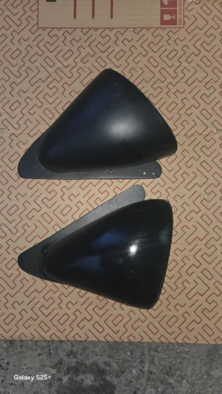 Tapizados para los pasos de rueda traseros de un Ford Fiesta MK1. - Piezas de plástico. - Color marrón oscuro.