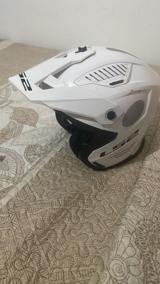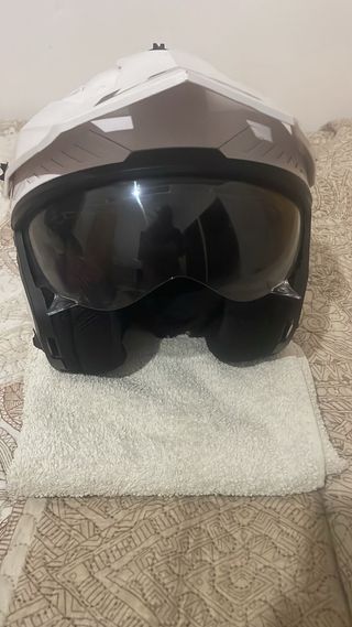 Casco de moto LS2 en color blanco. Diseño moderno y aerodinámico. - Visera integrada con otro visor oscuro. - Ventilación superior y frontal. - Logo LS2 visible. - Material KPA (Kinetic Polymer Alloy): mezcla de polímeros que combina ligereza y resistencia a impactos. - Sistema de ventilación con entradas y salidas de aire. - Mentonera desmontable y visera superior extraíble, para adaptarlo a diferentes estilos de conducción. - Cierre micrométrico rápido y seguro. Tengo la factura