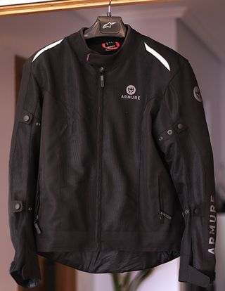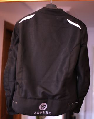 Chaqueta de moto Armure de verano en talla XL. Ideal para protegerte en tus rutas. Muy poco uso - Diseño en malla transpirable. - Cierre frontal con cremallera. - Detalles reflectantes en hombros y mangas. - Logos de la marca en pecho y manga.