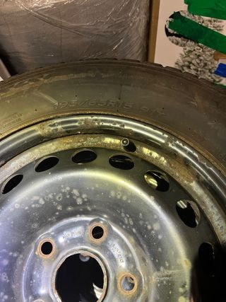 Rueda de coche con medidas 195/65R15 y código de carga/velocidad 91T. Llanta de acero. - Medida: 195/65R15 - Índice de carga/velocidad: 91T - Tipo de llanta: Acero - Grabado en llanta: 6J x 15 H2 ET47