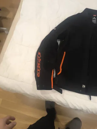 Chaqueta de moto Alpinestars en color negro con detalles naranjas. - Logo Alpinestars en naranja en el pecho. - Ribetes naranjas en los bolsillos. - Detalles reflectantes en las mangas. En muy buen estado como nueva TALLA M