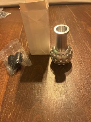 Pomo de Palanca de cambios cromada, con diseño deportivo para Golf GTI. Incluye adaptadores. Comprada por error - Diseño tipo bola de golf. - Acabado metálico. - Incluye adaptadores para instalación.